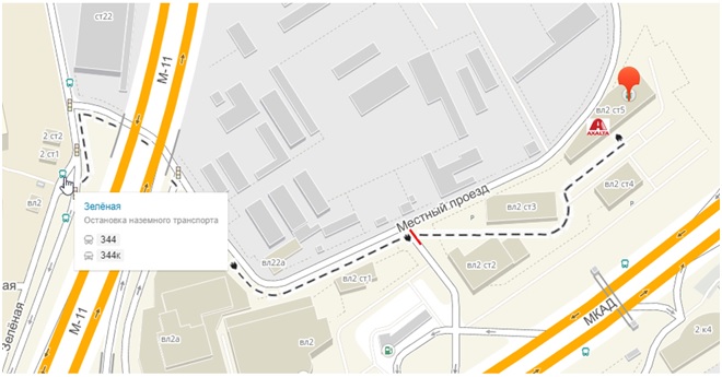 Пройти чуть вперед. Далее ехать 10 мин. на маршрутке или автобусе №344, 344к (Внимание: на автобусе должно быть написано «Химки – Левобережный. Из Москвы») до остановки «Зелёная».